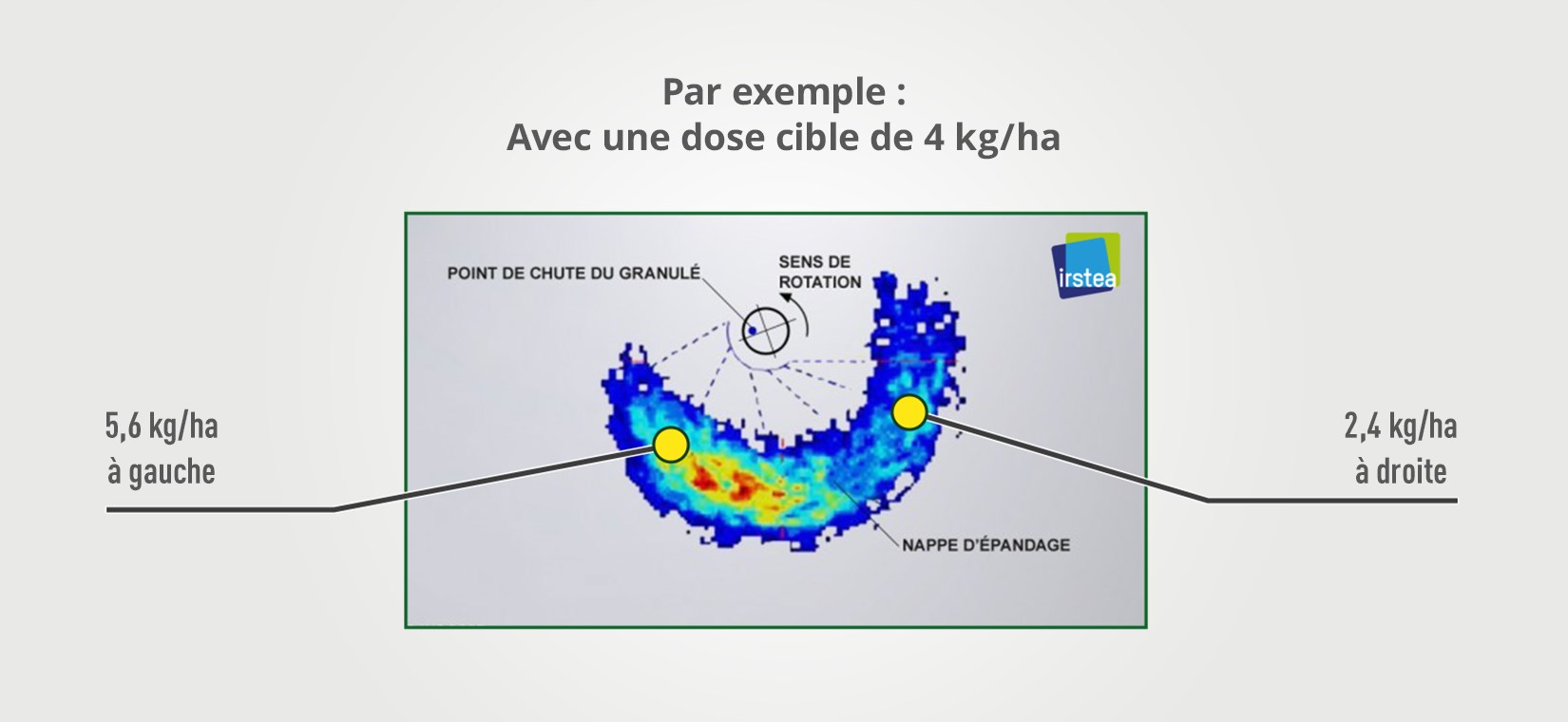Dans cet exemple, pour une dose cible de 4kg, les doses varient de 2,4kg à 5,6kg par hectare.